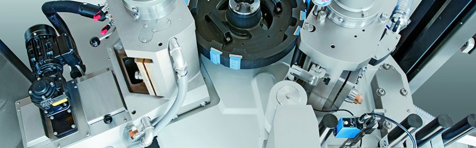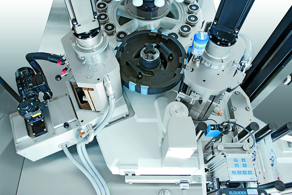 Il servomotore nel gruppo di etichettaggio controlla con precisione la tensione del film, che è svolto, tagliato e trasferito al contenitore attraverso la tecnologia del vuoto. Il rullo colla in acciaio inox distribuisce la colla ai lembi delle etichette. Il design del rullo garantisce un consumo minimo di colla.